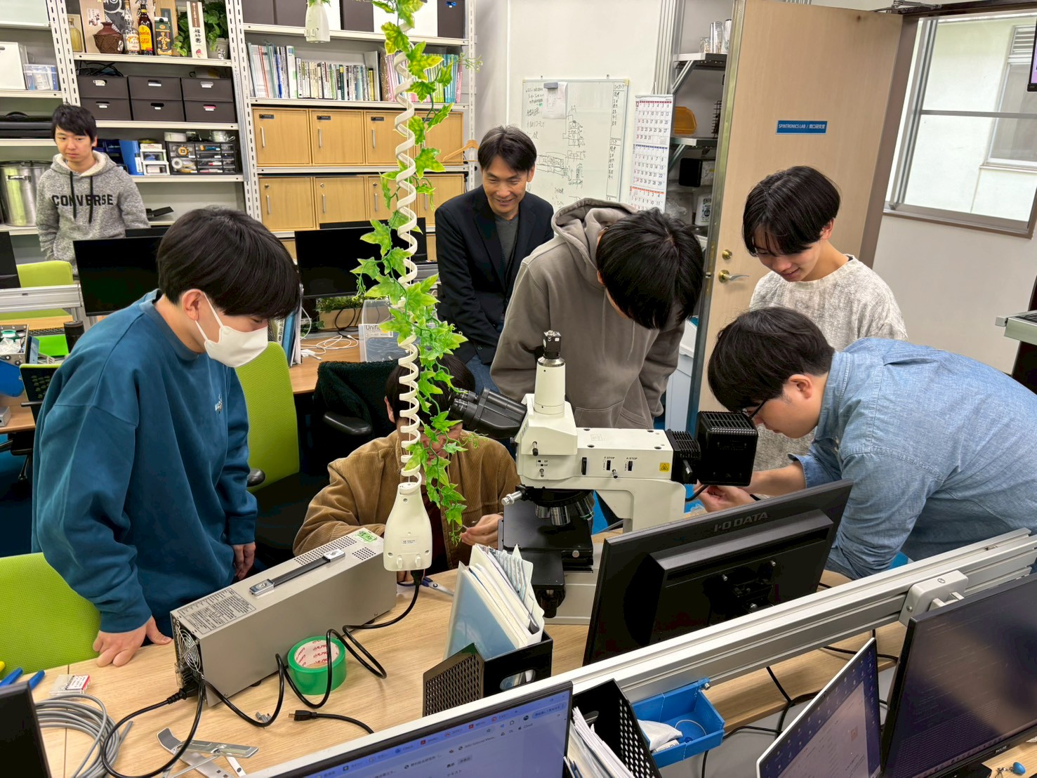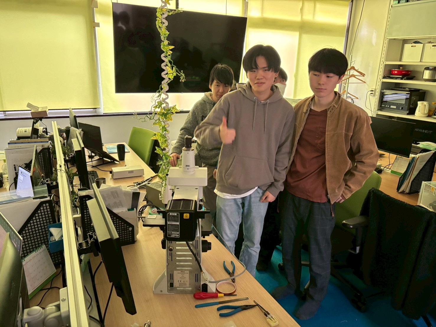 ホーム 研究室の風景 2025 2024 2023 2022 2021 2020 2019 2018 2025.12 2025.11 2025.10 2025.9 2025.8 2025.7 2025.6 2025.5 2025.4 大山登山 ケーブルカー使わない組は男坂から、置いてかれてますまだ序盤ですが、限界が近いみたいです 阿夫利神社に到着し、ケーブルカー組を待ちます紅葉がとてもきれいでした、映え写真に挑戦しています まだ手を振る余裕があります夫婦杉です、何か語り掛けています、怖いです逃げます 仲良さげなB4です、せっかく5人なので戦隊モノの衣装できてほしかったですね余裕です、この男。来年はもっと高い山にしてほしいみたいです 熊スプレーを持ってきてくれました、だれか近づいてあげてください最後の大山(無事卒業できれば) 昨年も似たポーズしてた気が、、山頂1番乗り B4、M1、M2です。仲良く談笑しています山頂の気温5度でこの軽装です。まったく寒くないと本人は語っていました。 山頂で集合写真を撮りました、全員無事に上り切りました!下山中、見晴らし台で休憩しています きれいな紅葉と、関口さんだけワンピースになっています下山完了!今年も関口さんにごちそうになりました 顕微鏡が使用不能になる緊急事態!立ち上がれ電情生!! 全員(?)の力を合わせて直しています、電情生はすごいですね応急処置はできたのでなんとか使用できそうです、お疲れさまでした!